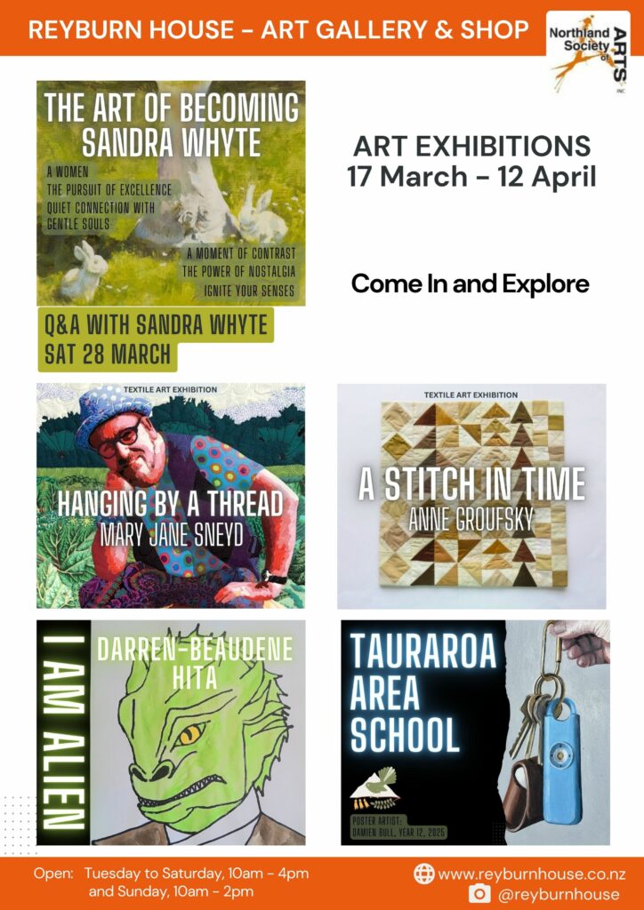 Each year we run our very own ‘Calendar Competition’, this is a special exhibition where Northland artists are invited to show off their very best work for an opportunity to win one of the twelve prize placements. Their artwork is then made into a Calendar which Reyburn House sell to help fundraise.