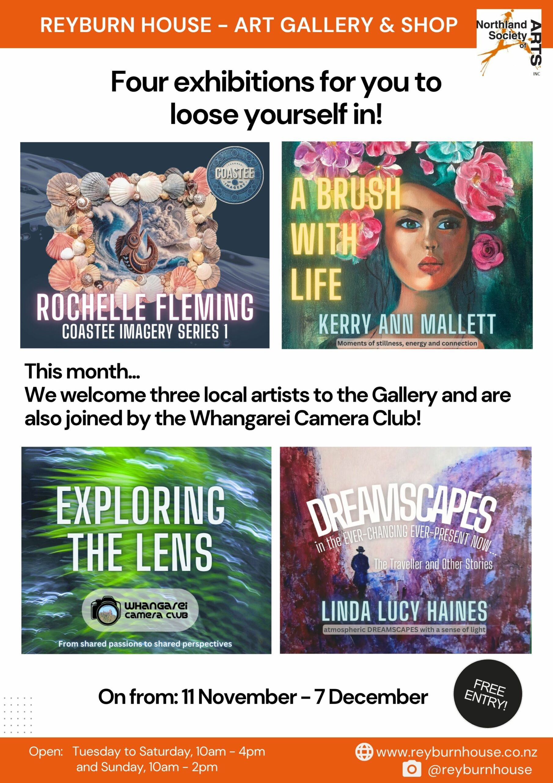 Members of the Northland Society of Arts (NSA) have come together to produce a fantastic array of artwork that is now on display at Reyburn House Art Gallery. As always, it is free entry, but we welcome any donations.
